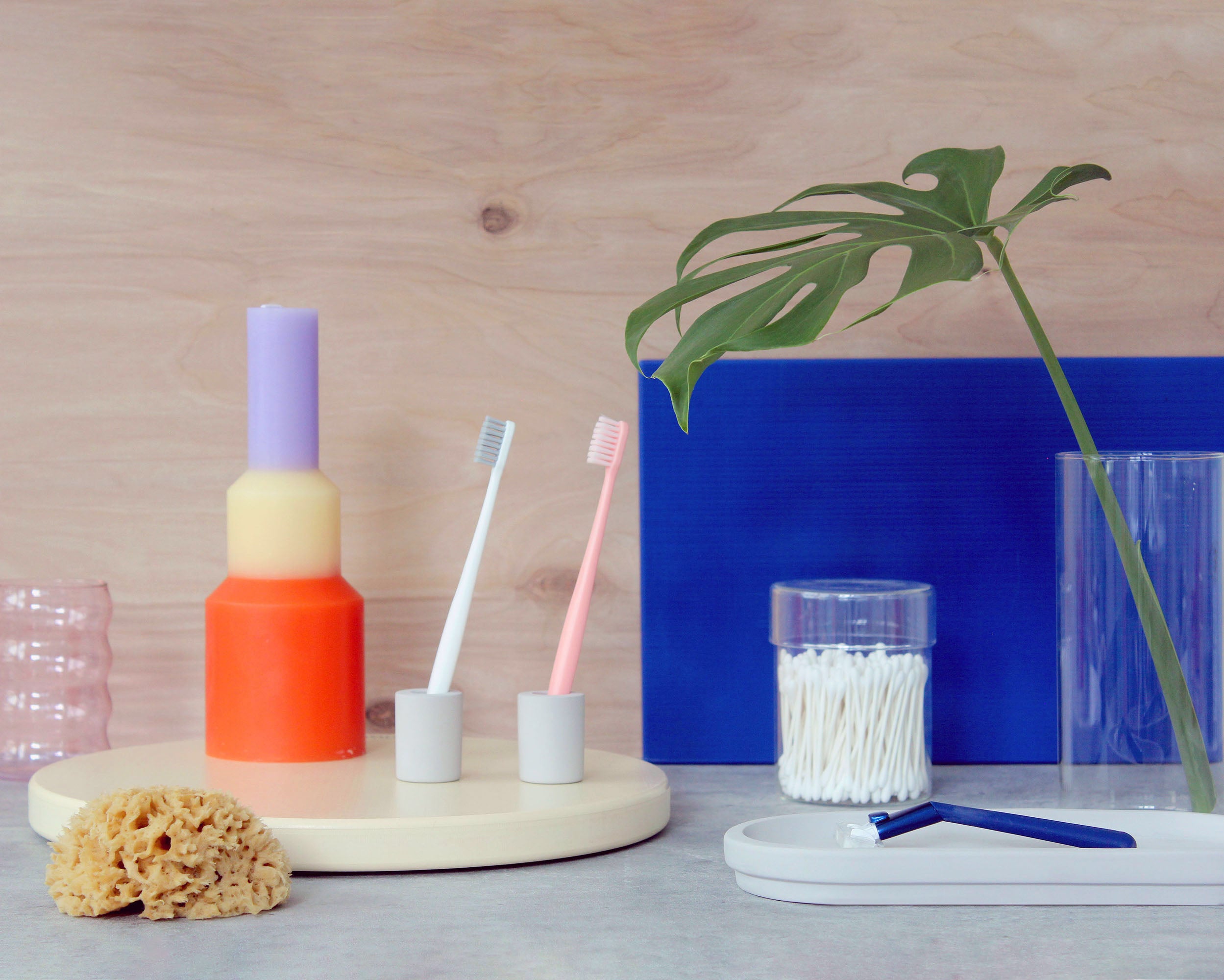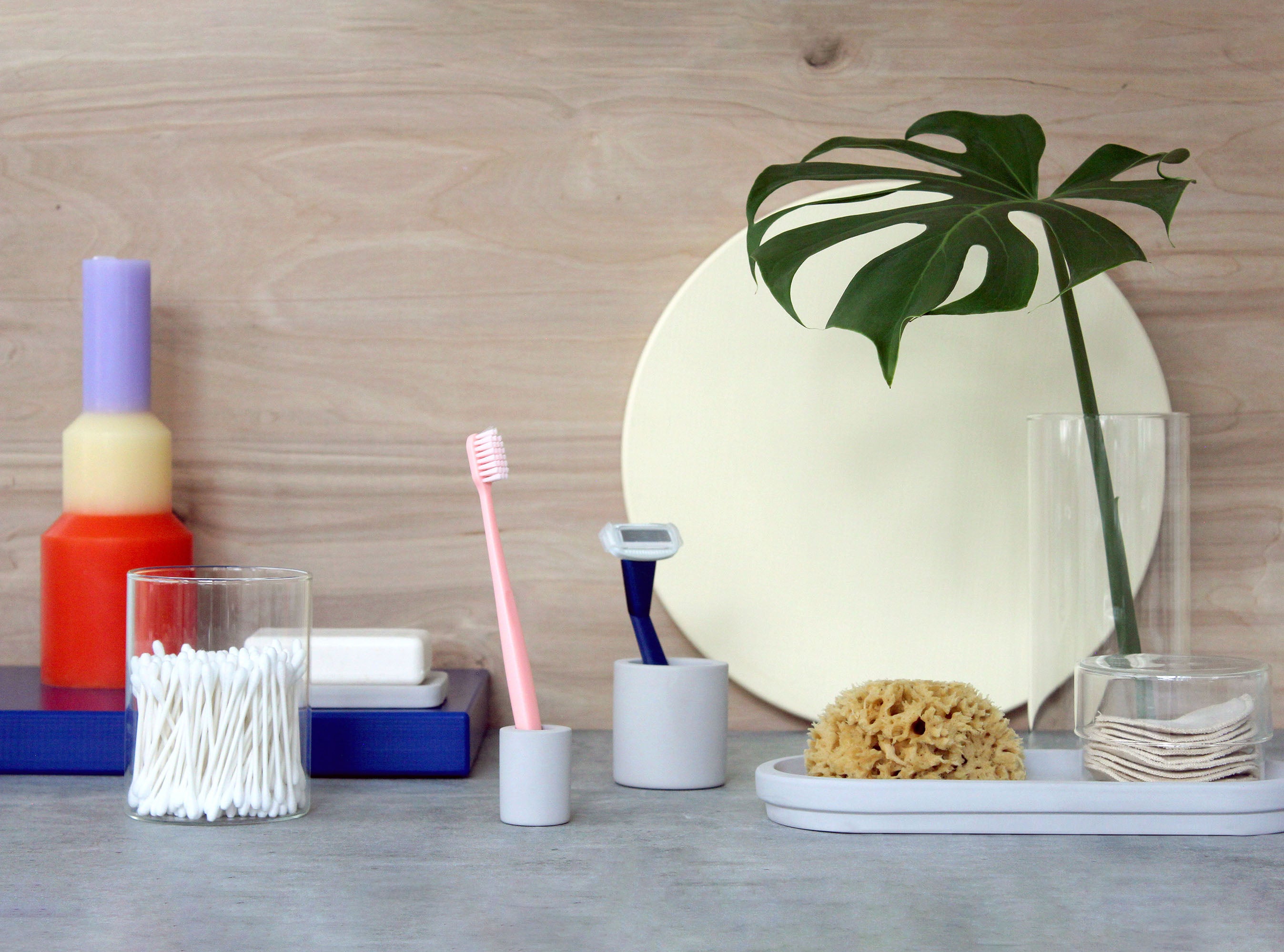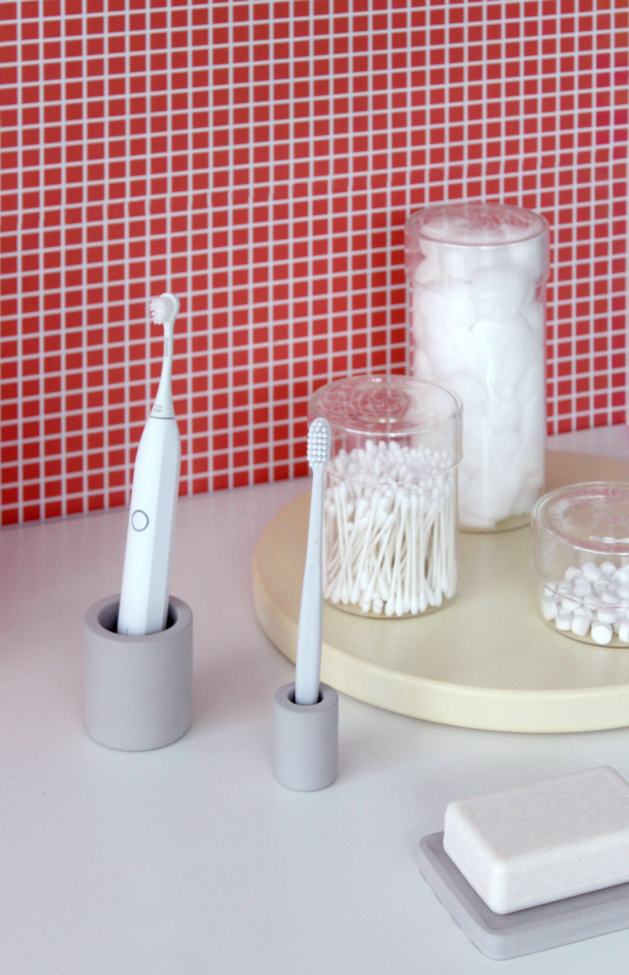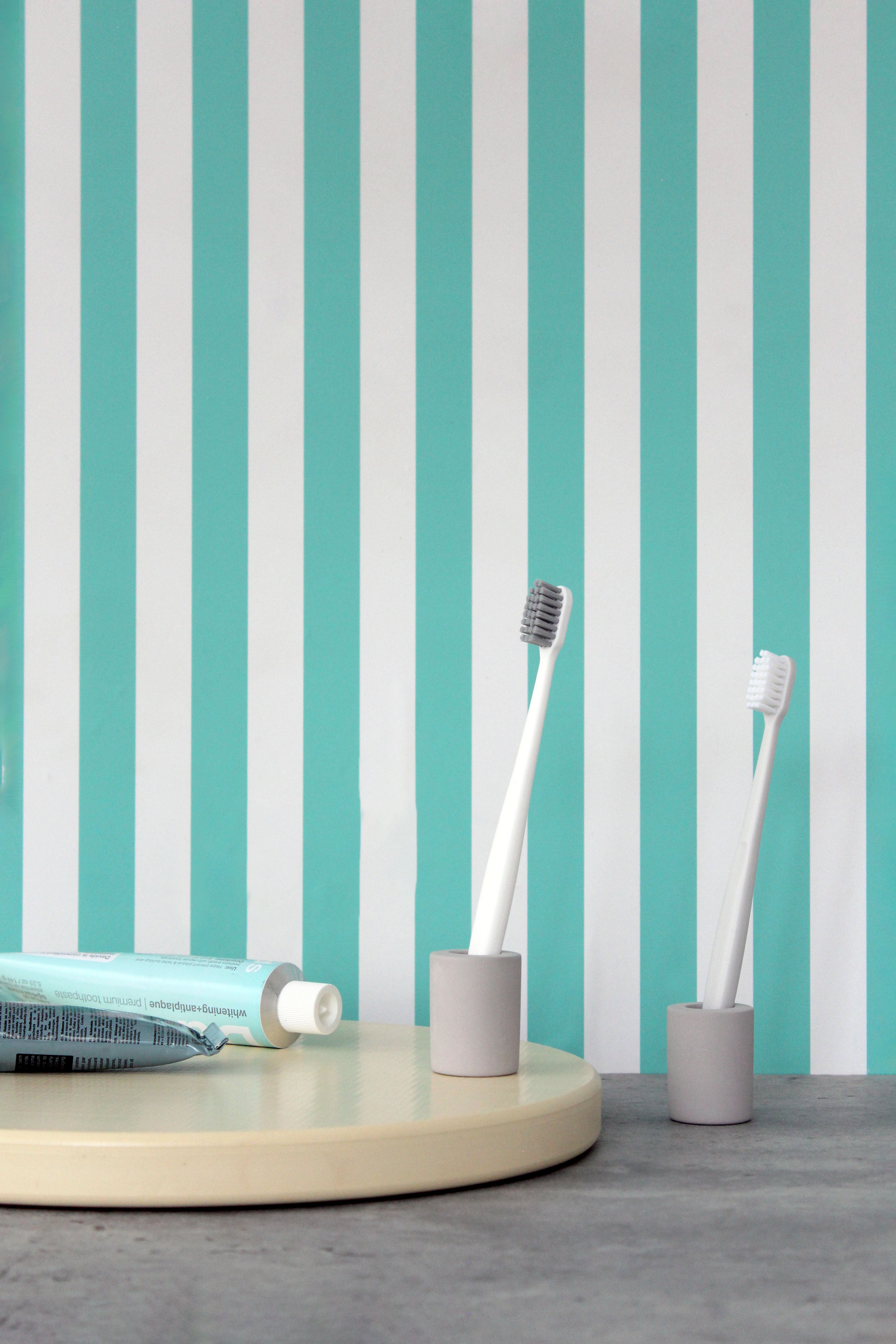 A chic, minimalist toothbrush holder made of Diatomaceous earth, a natural stone that is both antibacterial and quick-drying